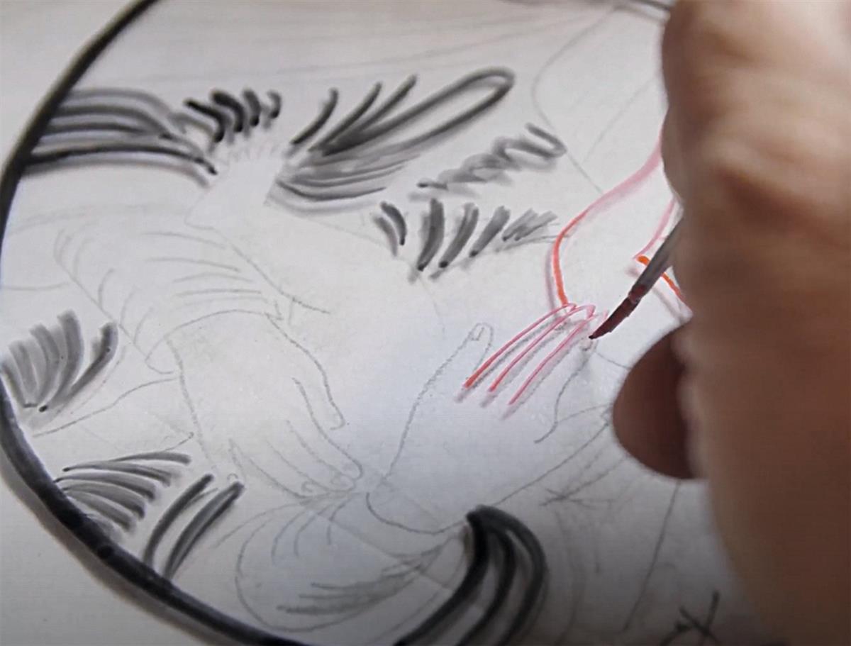 Šablonové předlohy se na odmaštěných tabulkách skla proměňovaly v kontury budoucích obrázků, ale nutně zrcadlově obrácených.