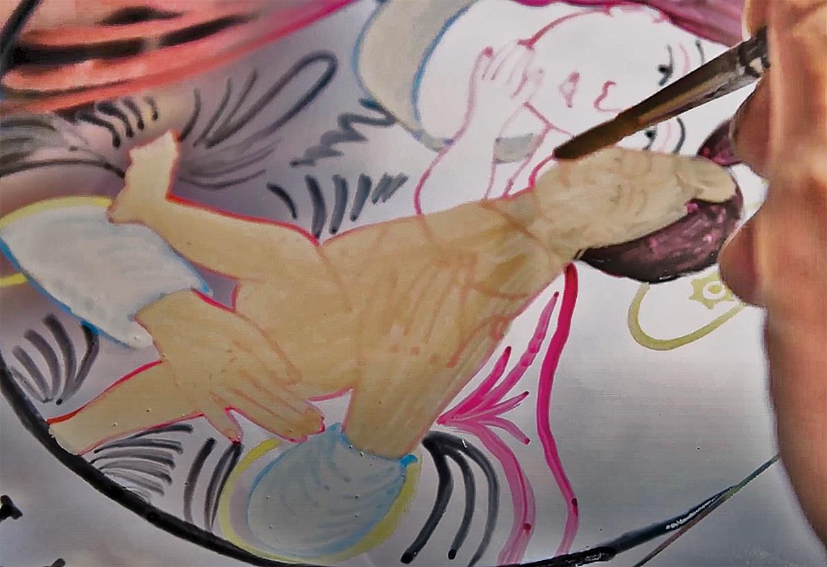 Barvy přibývaly od inkarnátů k oděvům, dost často i ve variabilních paletových nebo odstínových obměnách a mutacích, pak následovalo vyhotovení doprovodného květinového dekoru a končilo se kompletní výmalbou pozadí, zpravidla barevně jednotného, které zcela vyplnilo zbývající plochy.